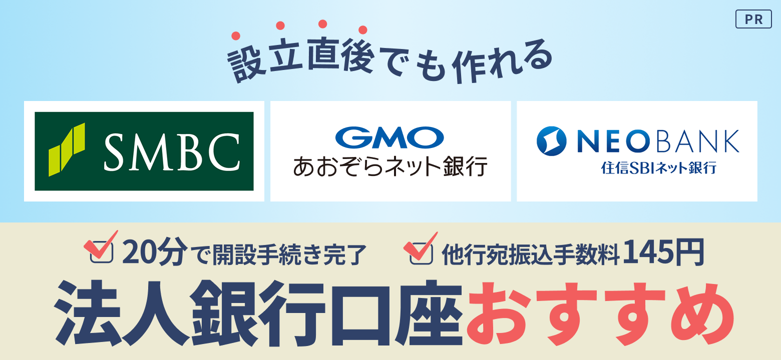 | 設立1年目の口座開設 | ![]() 設立直後でも可能 | ![]() 設立直後でも可能 | ![]() 設立直後でも可能 |